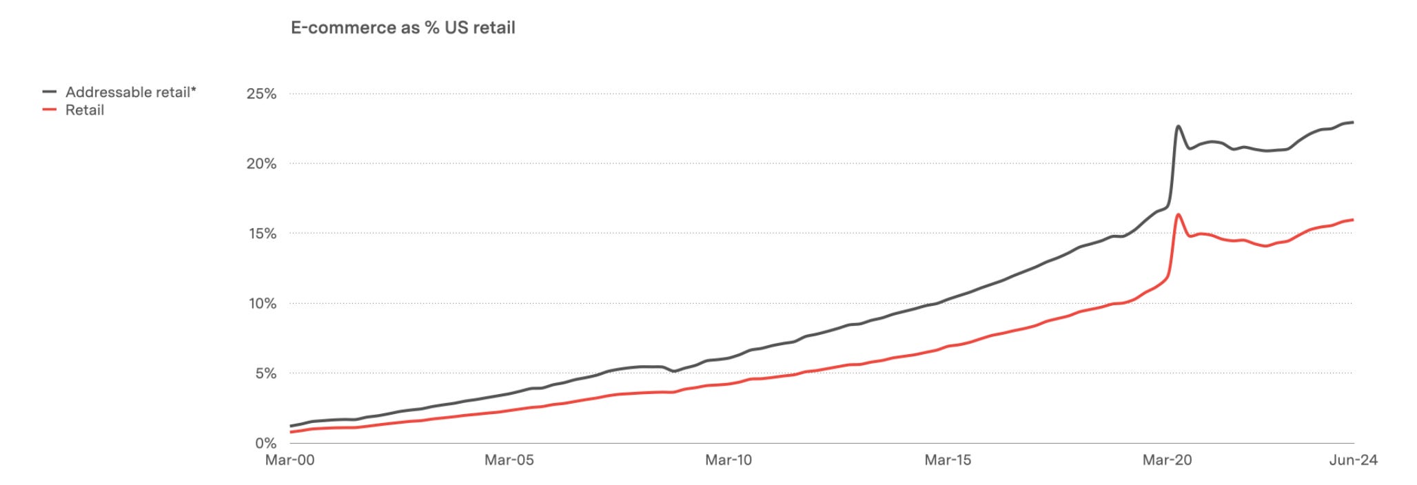 Enquanto todo mundo só olha para o mercado de inteligência artificial, o e-commerce continua seu contínuo crescimento, e o pior, a boca de jacaré só abre mais. Ou seja, com o passar do tempo, mais gente se habilita a virar um consumidor online e as empresas não crescem no e-commerce na mesma velocidade.